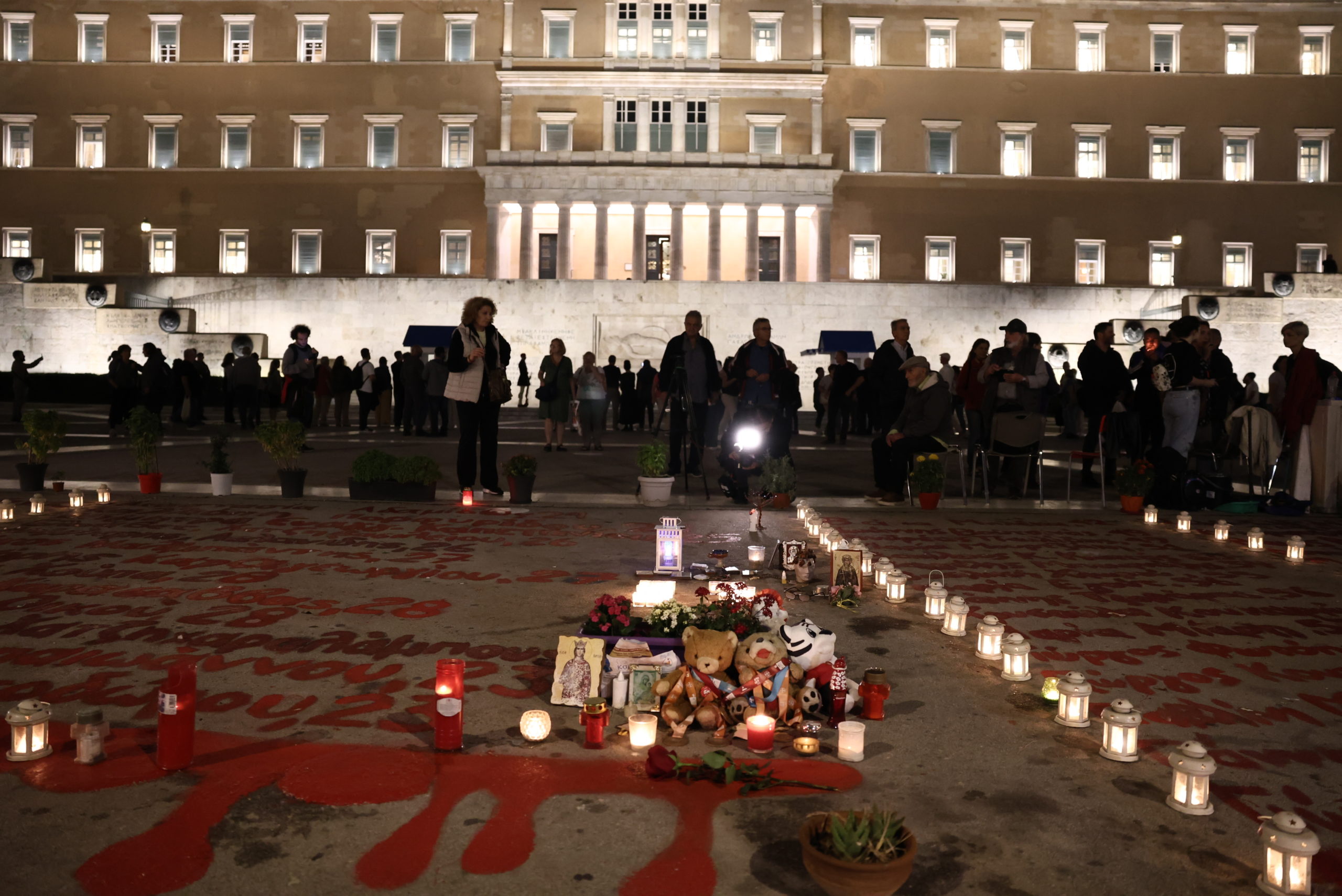 Άνθρωποι όλων των ηλικιών ανταποκρίθηκαν στα καλέσματα ομάδων, οργανώσεων και πολιτικών κομμάτων και συγκεντρώθηκαν μπροστά από το μνημείο του Αγνώστου Στρατιώτη προκειμένου να εκφράσουν την διαμαρτυρία τους, ενώ σε μία συμβολική κίνηση άναψαν κεριά στη μνήμη των 57 θυμάτων της τραγωδίας των Τεμπών, τα οποία τοποθέτησαν δίπλα στα ονόματά τους.