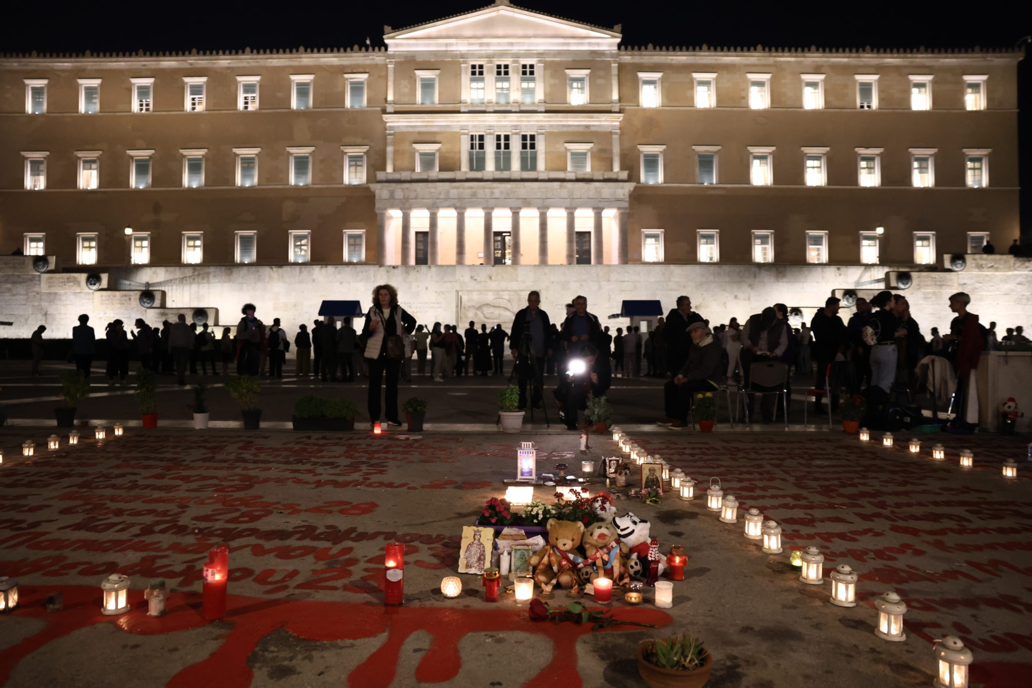 Άνθρωποι όλων των ηλικιών ανταποκρίθηκαν στα καλέσματα ομάδων, οργανώσεων και πολιτικών κομμάτων και συγκεντρώθηκαν μπροστά από το μνημείο του Αγνώστου Στρατιώτη προκειμένου να εκφράσουν την διαμαρτυρία τους, ενώ σε μία συμβολική κίνηση άναψαν κεριά στη μνήμη των 57 θυμάτων της τραγωδίας των Τεμπών, τα οποία τοποθέτησαν δίπλα στα ονόματά τους.