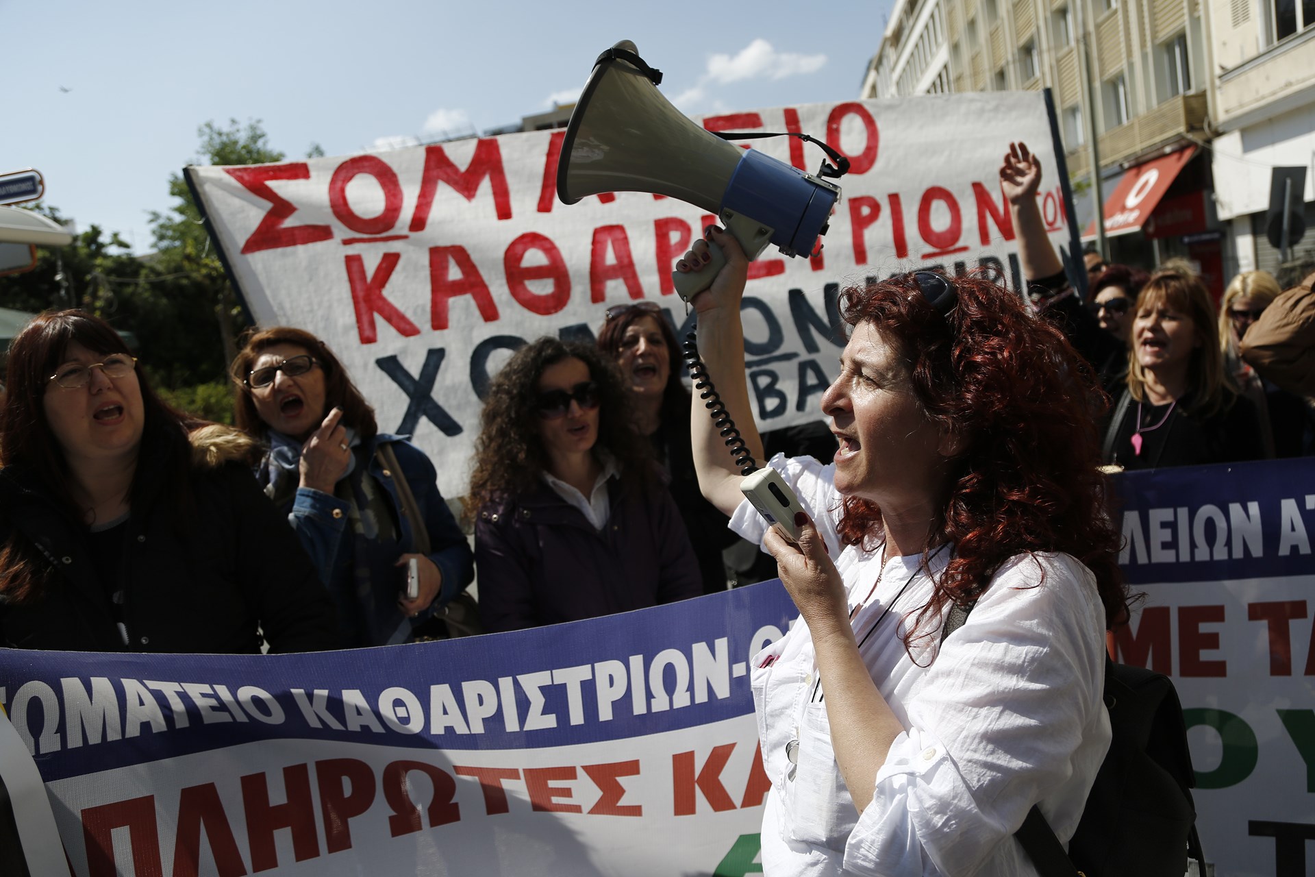 Διαμαρτυρία έξω από το υπουργείο Εσωτερικών πραγματοποίησαν οι εργαζόμενες στην καθαριότητα των δημόσιων σχολείων, κατά τη διάρκεια πανελλαδικής κινητοποίησης και απεργίας ζητώντας αυξήσεις στους μισθούς τους, ιατροφαρμακευτική κάλυψη και καλύτερες συνθήκες εργασίας«Το έργο το έχουμε ξαναδεί να παίζετε και κάθε φορά με χειρότερο σενάριο για τη ζωή μας. Εμεις οι εργαζόμενοι στην καθαριότητα ξέρουμε καλά απο μισθούς ψίχουλα, απληρωσιά, ελαστικές σχέσεις εργασίας, εντατικοποίηση, ομηρία στις συμβασιούχες σχολικές, εκμετάλλευση και κοροϊδία», αναφέρει το σωματείο καθαριστών σχολείων δημόσιας – ιδιωτικής εκπαίδευσης σε σχετική ανακοίνωση.
