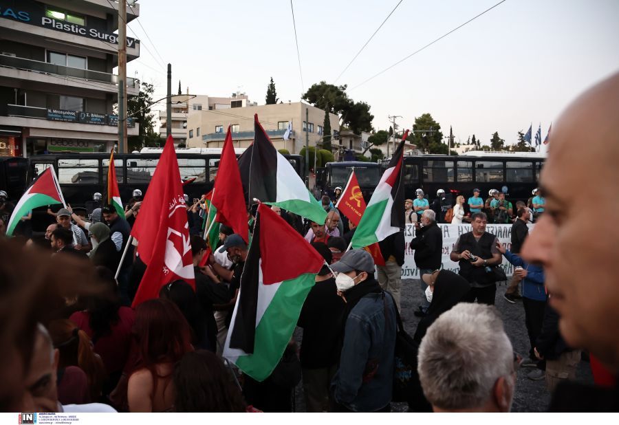 Συγκέντρωση έξω από την πρεσβεία του Ισραήλ – Κλειστή η Κηφισίας στη συμβολή της με την Κατεχάκη