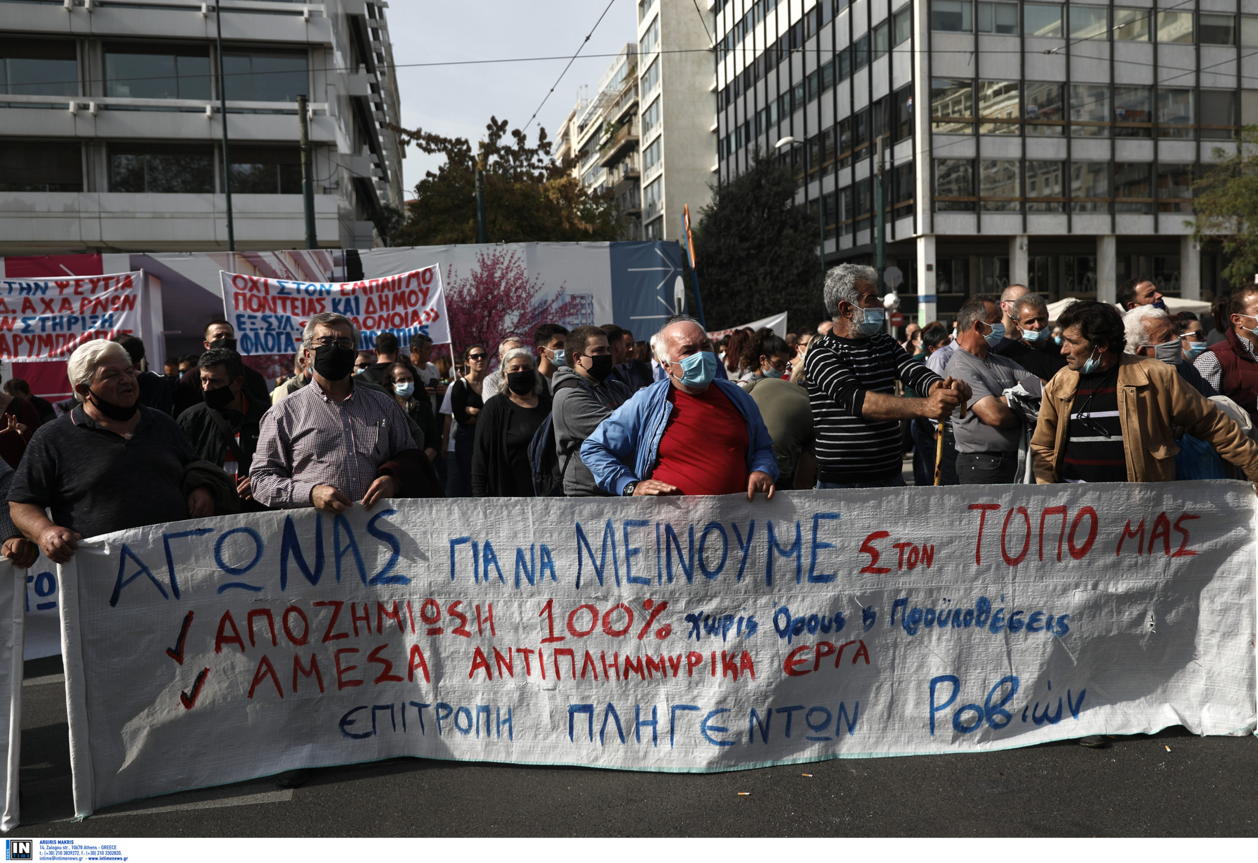Πορεία προς στη Βουλή πραγματοποιούν αυτή την ώρα οι πληγέντες από φυσικές καταστροφές.
