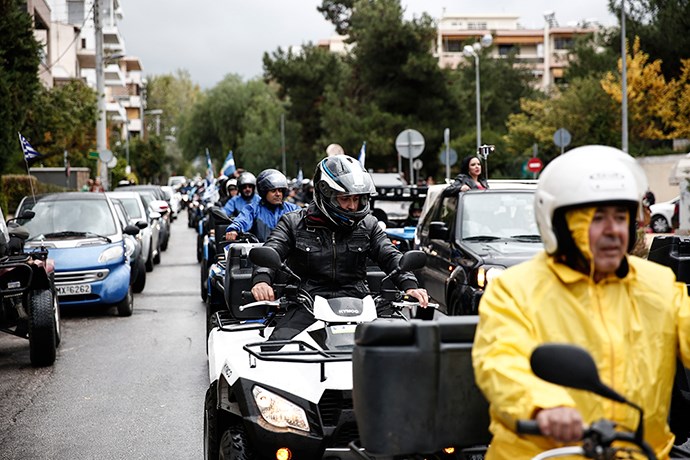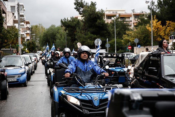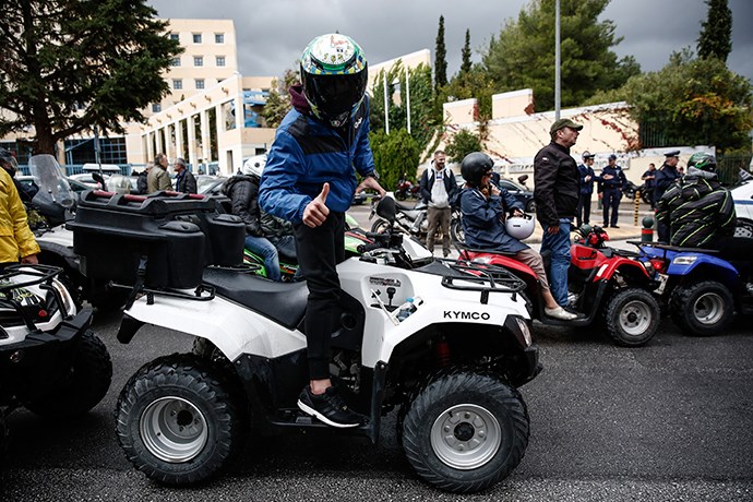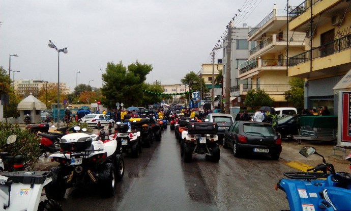 Έξω από υπουργείο Μεταφορών έφτασαν το μεσημέρι δεκάδες “γουρούνες” καθώς οι ιδιοκτήτες των ενοικιαζόμενων τετράτροχων που ήρθαν στην Αθήνα από πολλά νησιά της χώρας, διαμαρτύρονται για τις επερχόμενες αλλαγές στον Κώδικα Οδικής Κυκλοφορίας.