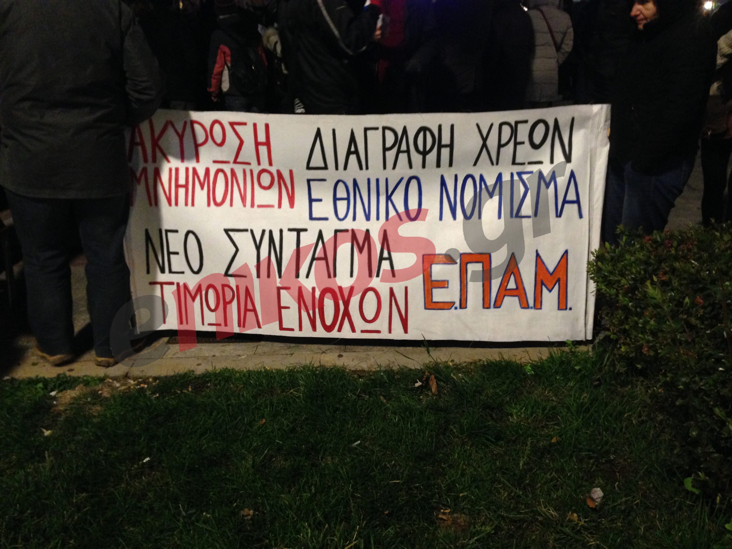 Όπως βλέπετε και στις φωτογραφίες που έστειλε αναγνώστης του enikos.gr διαδηλωτές, κρατούσαν ελληνικές σημαίες και πανό με συνθήματα.