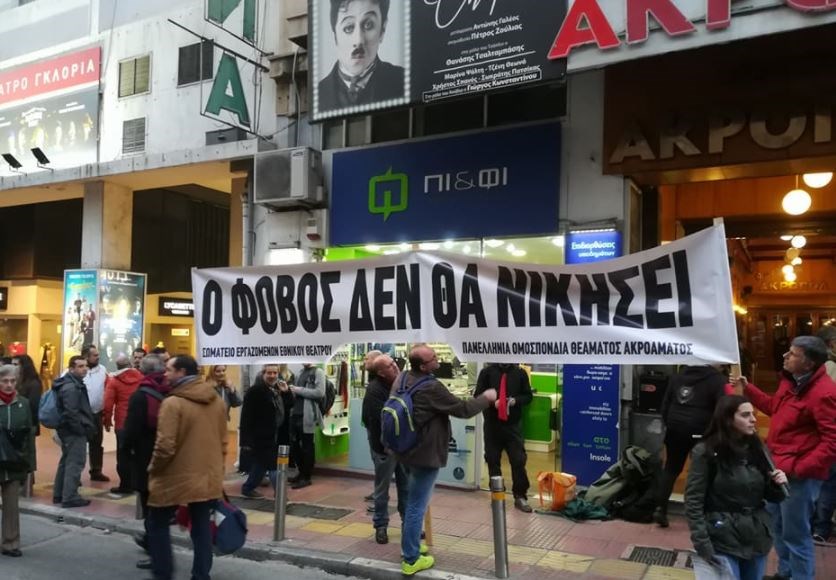Ταυτόχρονα δήλωσαν πως «δεν θα λυγίσουν στον φόβο που επιδιώκει να σπείρει μια αναχρονιστική ομάδα». Εξέφρασαν μάλιστα την άποψη πως «η καθημερινή δράση τους έξω από το θέατρο υπερβαίνει το όποιο δημοκρατικό δικαίωμα διαμαρτυρίας και γίνεται φορέας ανομίας και διοργανωτής πογκρόμ». Την ίδια ώρα, αναρωτιούνται πώς «παρ’ όλες τις μηνύσεις και αναφορές στην εισαγγελία, δεν έχουν γίνει συλλήψεις ή προσαγωγές» ενώ σημειώνουν πως «οι αστυνομικές δυνάμεις παρακολουθούν αμέτοχες».