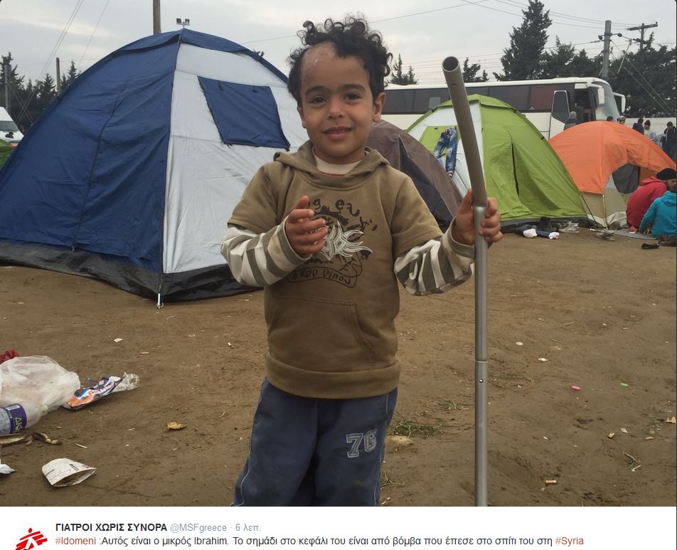Ο Ιμπραήμ, ο μικρός πρόσφυγας από τη Συρία που βρίσκεται στην Ειδομένη, έχει ένα σημάδι στο κεφάλι του…