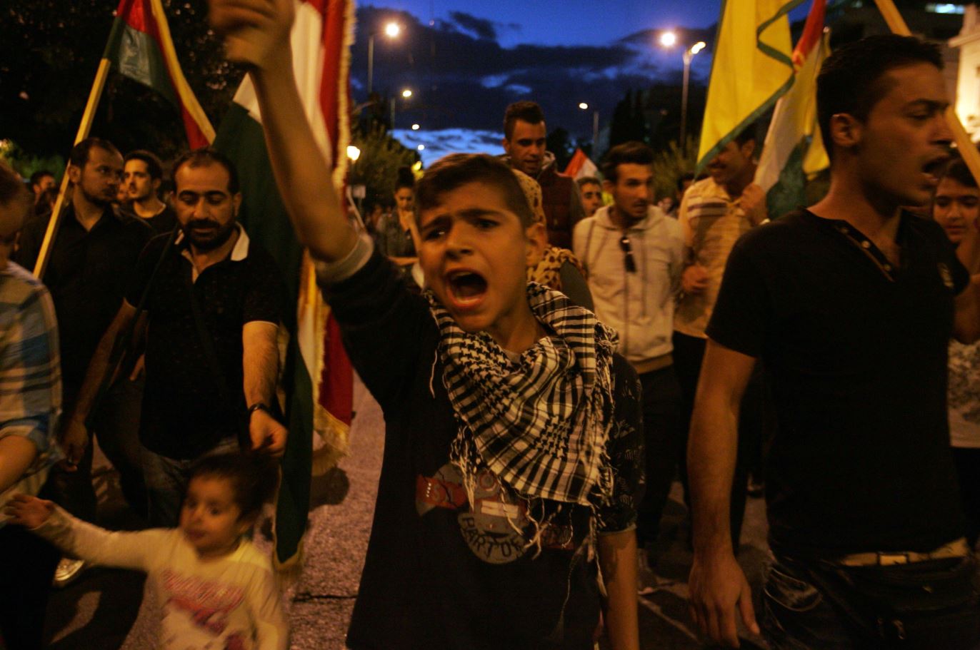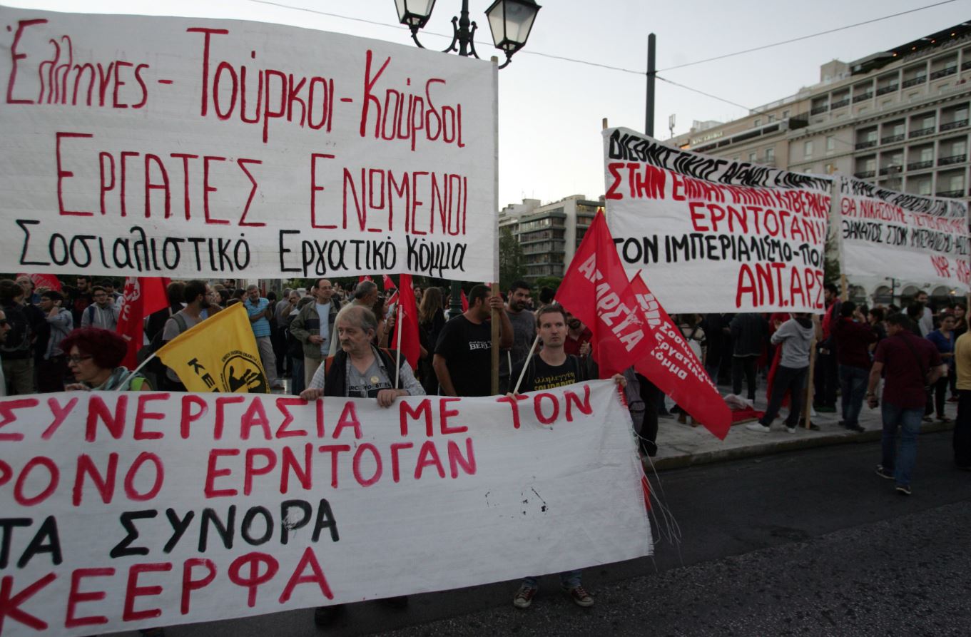 Συγκέντρωση αλληλεγγύης στον κουρδικό και τουρκικό λαό μετά την πολύνεκρη τρομοκρατική επίθεση του Σαββάτου στην Άγκυρα πραγματοποιήθηκε στο Σύνταγμα χθες το απόγευμα.