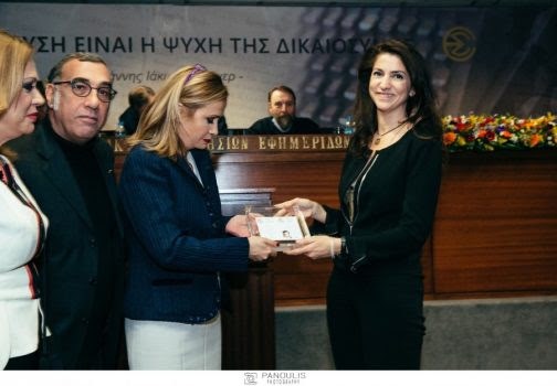 Στη συνέχεια, αντιπροσωπεία των Διοικητικών Συμβουλίων της ΕΣΗΕΑ και του Μορφωτικού Ιδρύματος παρέδωσε τιμητική πλακέτα που παρέλαβε η Αλεξία Μπακογιάννη ενώ η δημοσιογράφος και συγγραφέας Εύα Νικολαΐδου έκανε μια σύντομη παρέμβαση, καθώς ήταν εκείνη που πήρε την τελευταία του συνέντευξη για το περιοδικό «ΓΥΝΑΙΚΑ». Το συγκεκριμένο περιοδικό παρέδωσε στη Ντόρα Μπακογιάννη.