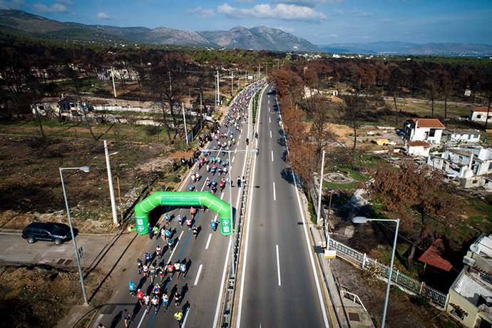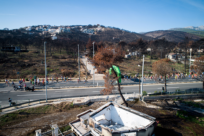 Περνώντας από το Μάτι οι δρομείς είτε σήκωναν το χέρι του προς αυτούς τους ανθρώπους που έχασαν τους δικούς τους και τα σπίτια τους από τη φονική πυρκαγιά, ενώ άλλοι χειροκροτούσαν τους πυρόπληκτους, οι οποίοι πραγματοποίησαν διαμαρτυρίας κατά μήκος της διαδρομής.