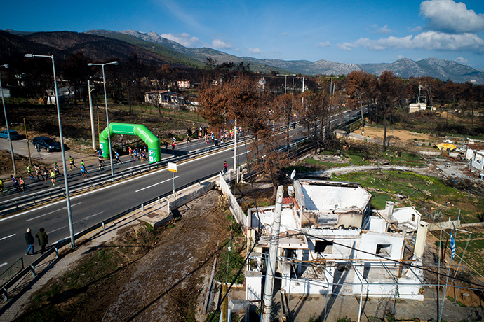 Περνώντας από το Μάτι οι δρομείς είτε σήκωναν το χέρι του προς αυτούς τους ανθρώπους που έχασαν τους δικούς τους και τα σπίτια τους από τη φονική πυρκαγιά, ενώ άλλοι χειροκροτούσαν τους πυρόπληκτους, οι οποίοι πραγματοποίησαν διαμαρτυρίας κατά μήκος της διαδρομής.