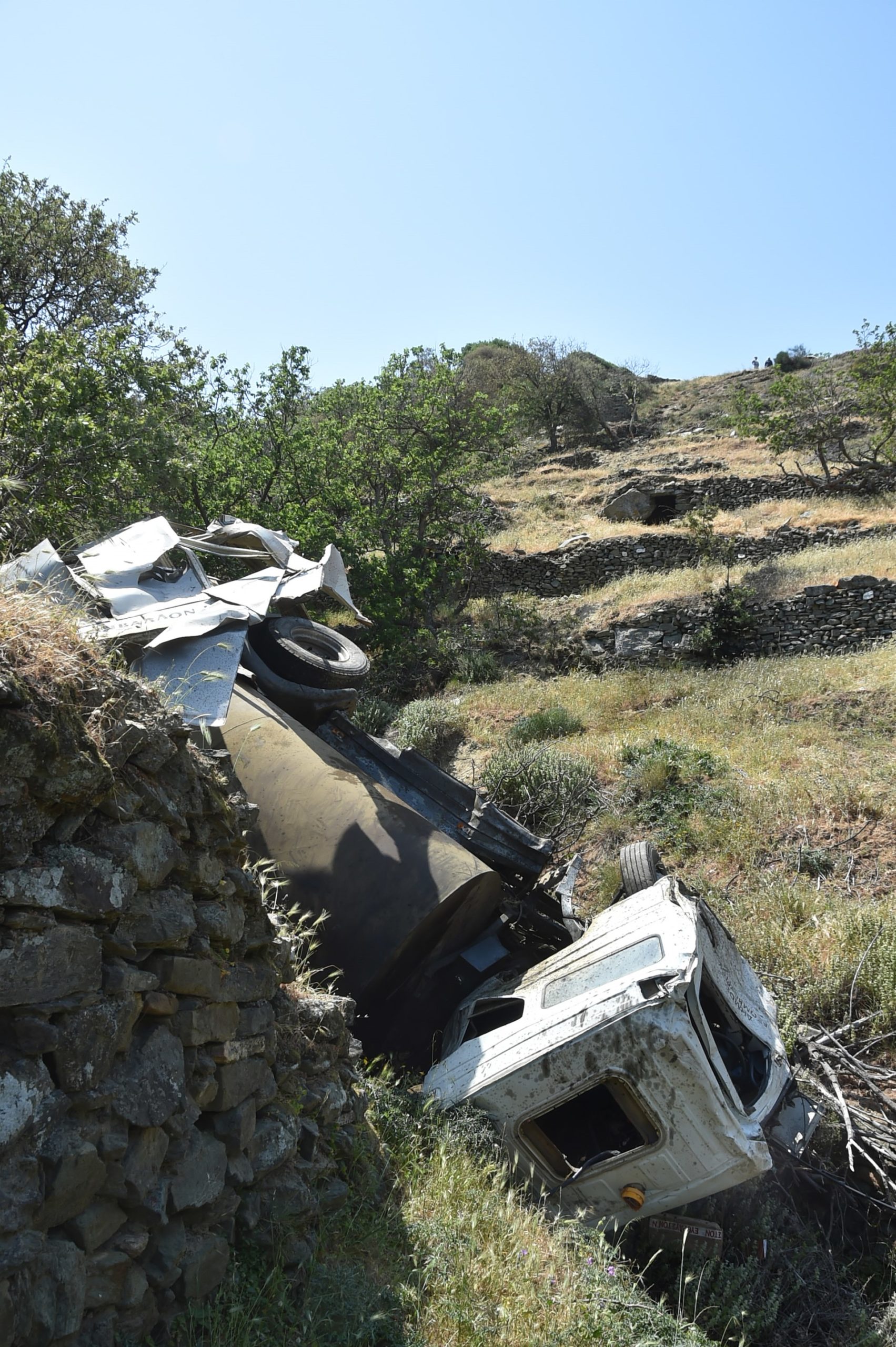 Τραγικό δυστύχημα με δύο νεκρούς και έναν τραυματία σημειώθηκε σήμερα στην Τήνο, όταν ένα απορριμματοφόρο έπεσε σε γκρεμό στην περιοχή Ποταμιά.