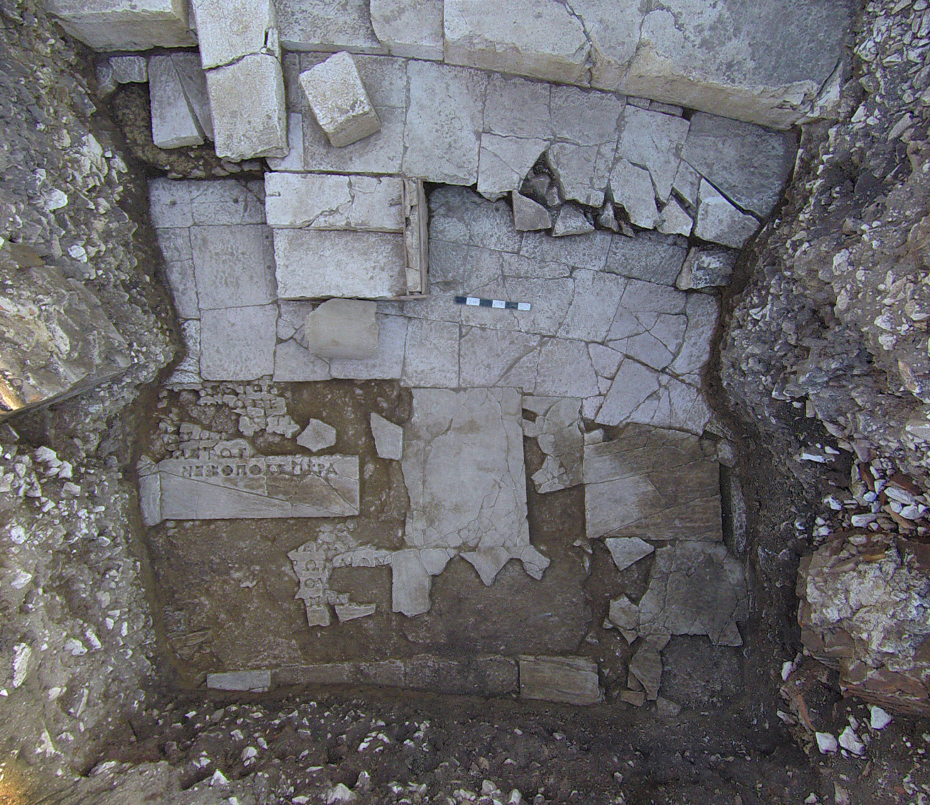 2. Αποκάλυψη εδωλίων του κάτω κοίλου (ima cavea) και του δαπέδου της ορχήστρας με εσοχές της ένθετης πολύστιχης επιγραφής.