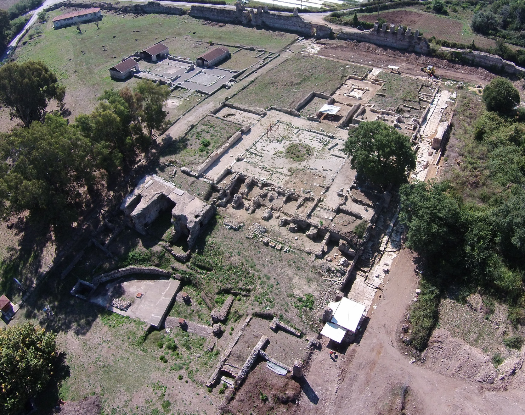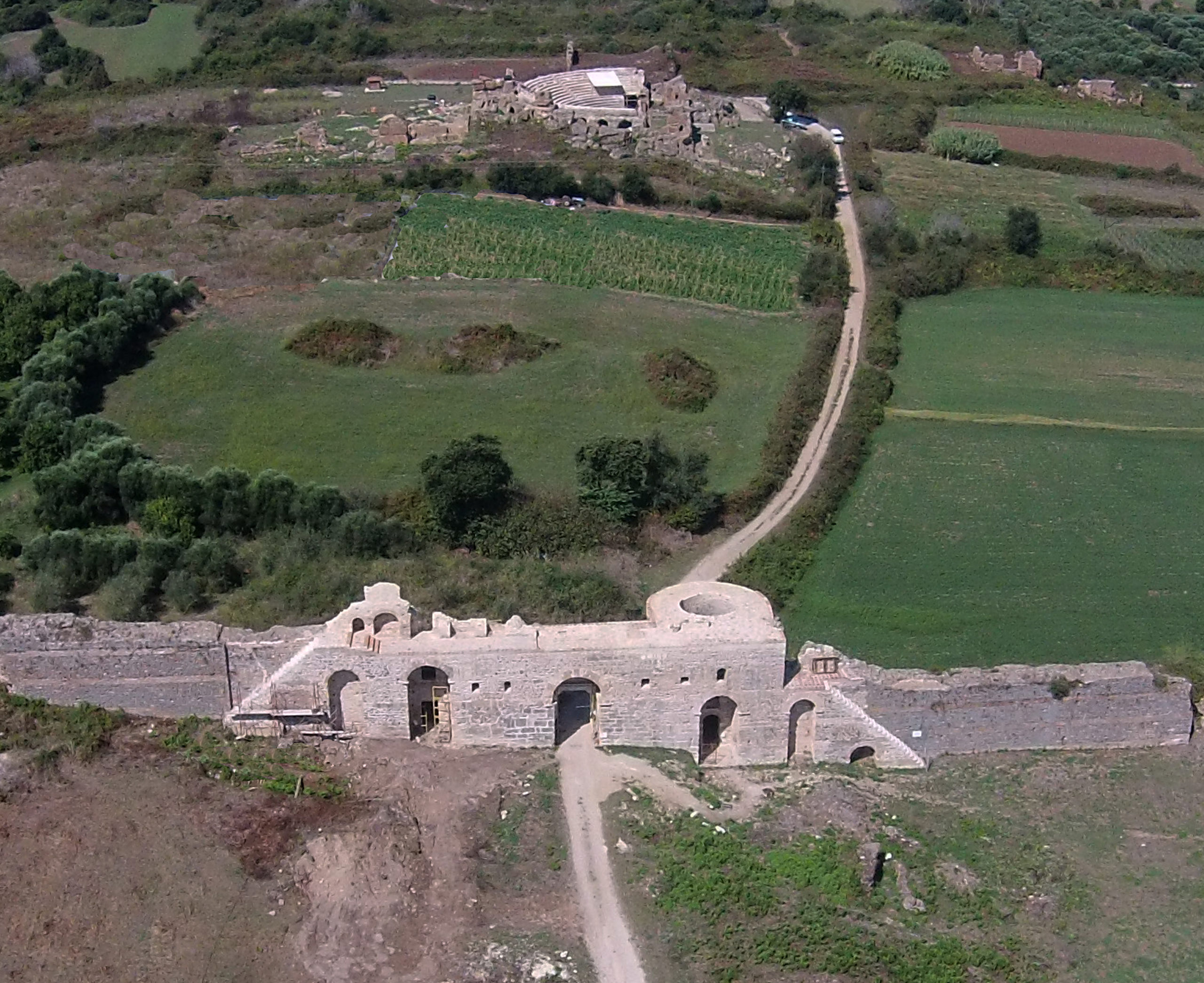 4. Αεροφωτογραφία από ανατολάς της δυτική πύλης γνωστής ως «Αραπόπορτας» των παλαιοχριστιανικών τειχών καθώς και του ωδείου στο τέλος των εργασιών στερέωσης και αποκατάστασης