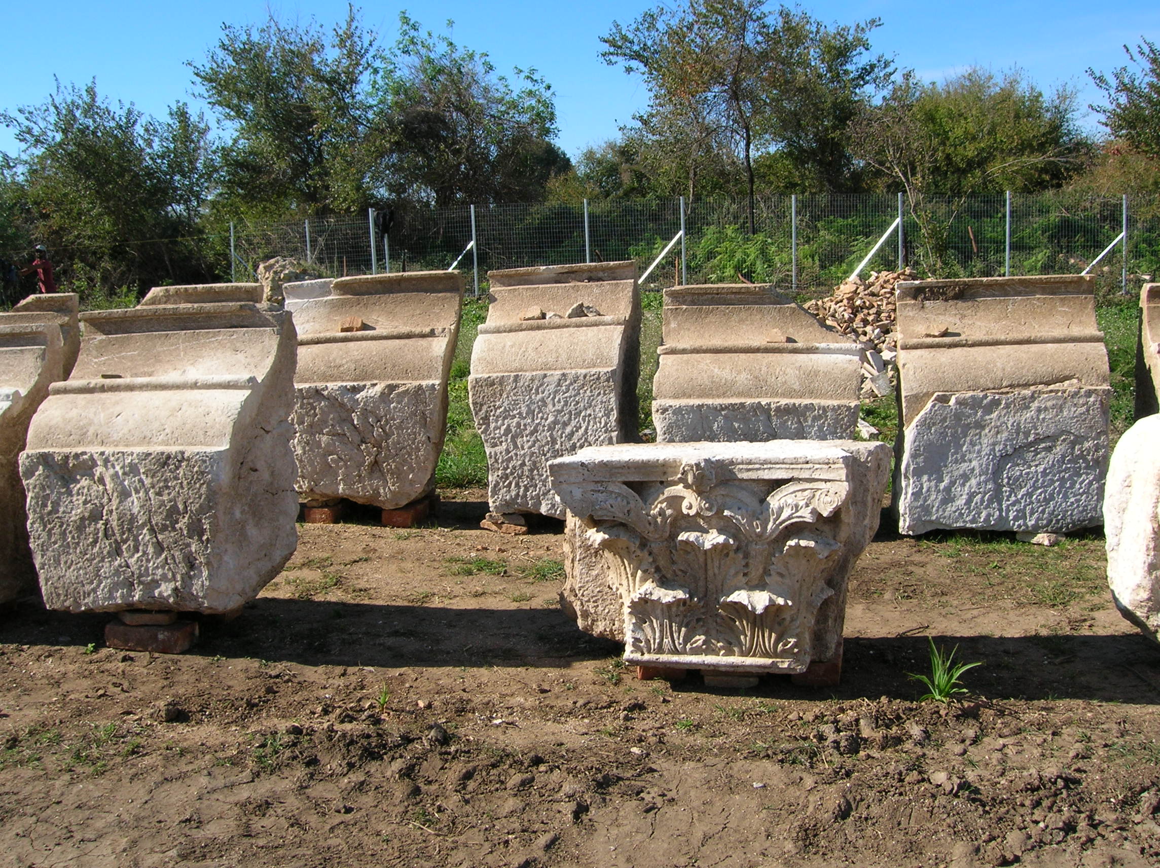 6. Αρχιτεκτονικά μέλη της καταπεσμένης ανωδομής του ωδείου παρατεταγμένα μετά την απομάκρυνση τους