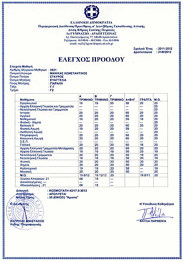 ΥΓ. όχι από ματαιοδοξία αλλά για να στερήσω από κάποιους το γελοίο επιχείρημα πως «απλά θέλω να χάσω μαθήματα» , παραθέτω τους βαθμούς μου…»