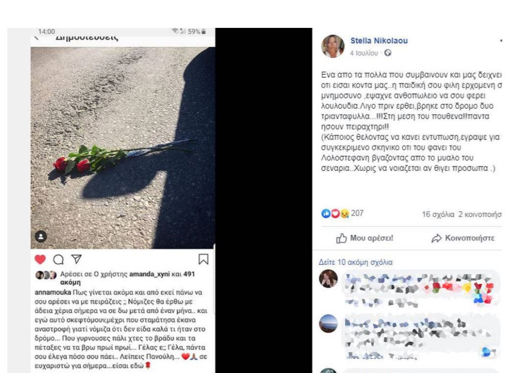 Συγκλονίζει η παιδική φίλη του Πάνου Ζάρλα, αλλά και η μητέρα του νικητή του Power Of Love 1, που άφησε την τελευταία του πνοή σε τροχαίο δυστύχημα. Η φίλη του, «ανέβασε» στο λογαριασμό της στο instagram, φωτογραφία με δύο τριαντάφυλλα στο δρόμο και έγραψε:«Πώς γίνεται ακόμα και από εκεί πάνω να σου αρέσει να με πειράζεις ;; Νόμιζες θα έρθω με άδεια χέρια σήμερα να σε δω μετά από έναν μήνα.. και εγώ αυτό σκεφτόμουν, μέχρι που σταμάτησα έκανα αναστροφή γιατί νόμιζα ότι δεν είδα καλά τι ήταν στο δρόμο… Που γυρνούσες πάλι χτες το βράδυ και τα πέταξες να τα βρω πρωί πρωί… Γελάς ε;; Γέλα, πάντα σου έλεγα πόσο σου πάει.. Λείπεις Πανούλη… Σε ευχαριστώ για σήμερα…είσαι εδώ», έγραψε.
