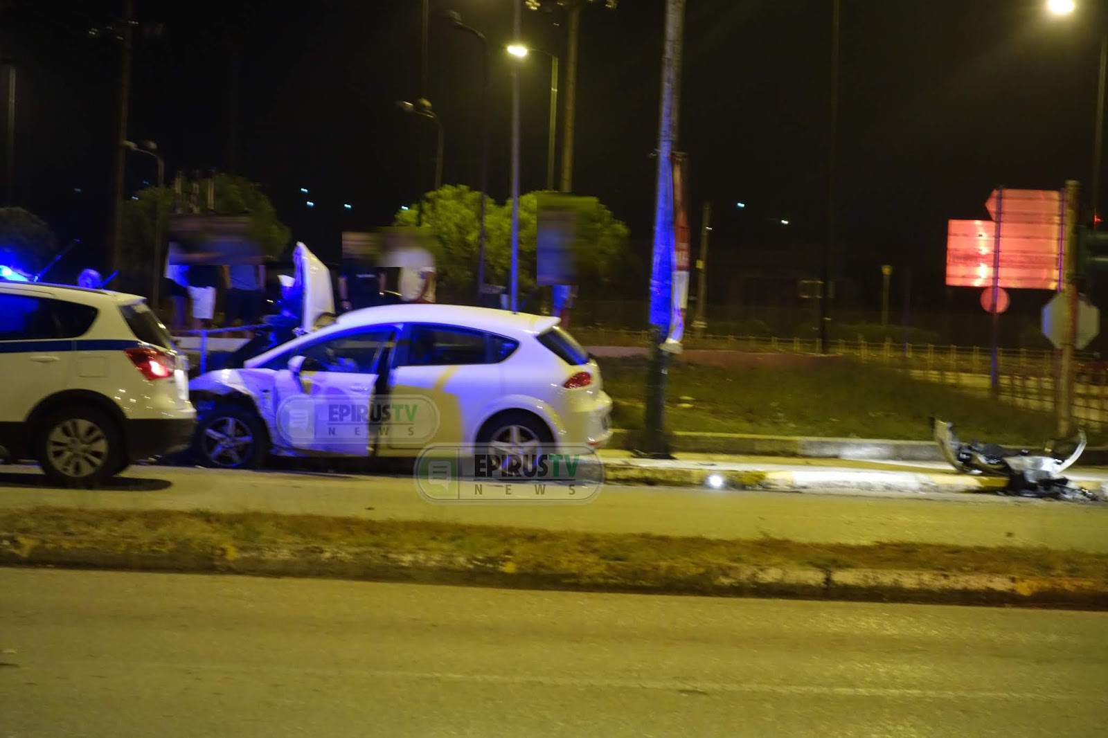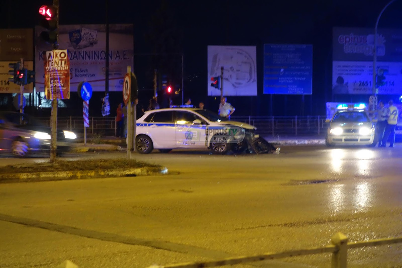 Ι.Χ.Ε αυτοκίνητο συγκρούστηκε και περιπολικό του λίγα λεπτά μετά τις 23.00 το βράδυ της Κυριακής επί της Ε.Ο Άρτας-Ιωαννίνων , στον κόμβο του Πανηπειρωτικού Σταδίου .