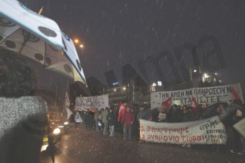Με κεντρικό σύνθημα “Όχι στο μαύρο των εκβιασμών”, οι διαδηλωτές αποφάσισαν να δώσουν στο συλλαλητήριο «χαρακτήρα κατά των εκβιασμών των δανειστών», στηρίζοντας -όπως τονίζουν- με αυτό τον τρόπο τα «αυθόρμητα λαϊκά συλλαλητήρια που διοργανώνονται σήμερα στο Σύνταγμα και αλλού».