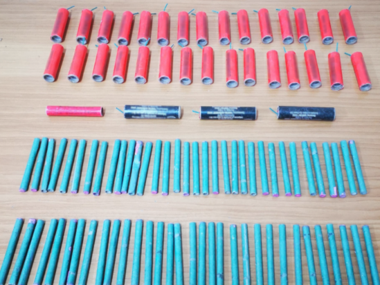 Σύμφωνα με αστυνομικές πηγές στην κατοχή του εντοπίστηκαν 2 εκτοξευτήρες με 16 κροτίδες.
