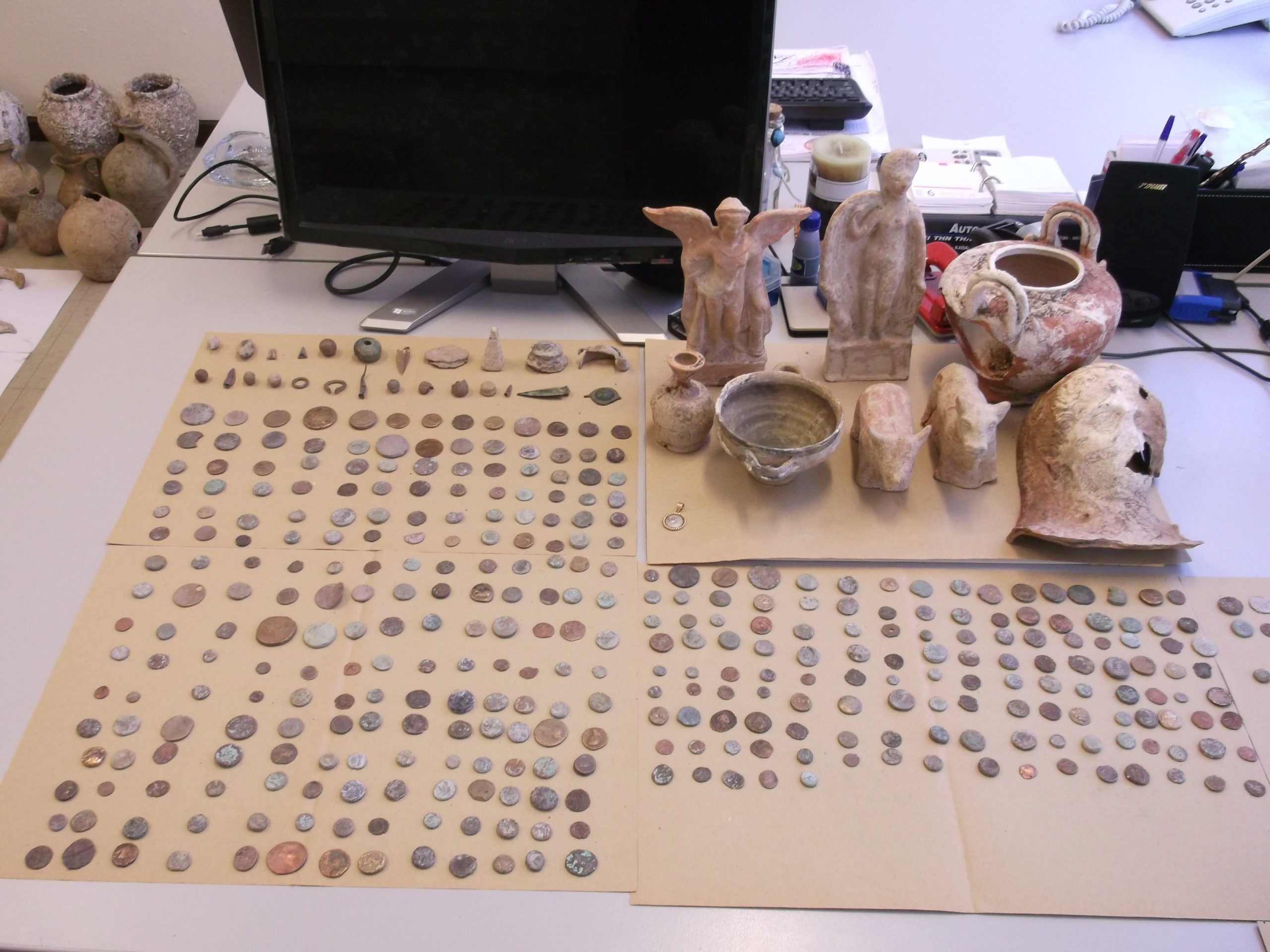Ύστερα από έρευνα των αρχών στο σπίτι της 59χρονης, βρέθηκαν, μεταξύ άλλων και κατασχέθηκαν: 553 αρχαία νομίσματα (ελληνικά, ρωμαϊκά, ελληνορωμαϊκά και βυζαντινά), 26 αρχαία χάλκινα και μολύβδινα μικροαντικείμενα, τρεις επιτύμβιες μαρμάρινες πλάκες, ένα τρίπτυχο χριστιανικής εικόνας, εννέα αγγεία (παλαιοχριστιανικών ή βυζαντινών χρόνων), ένας αμφορέας, ένα αρχαίο κύπελλο, ένα τμήμα μαρμάρινης επιτύμβιας στήλης, τέσσερα πήλινα εδώλια.