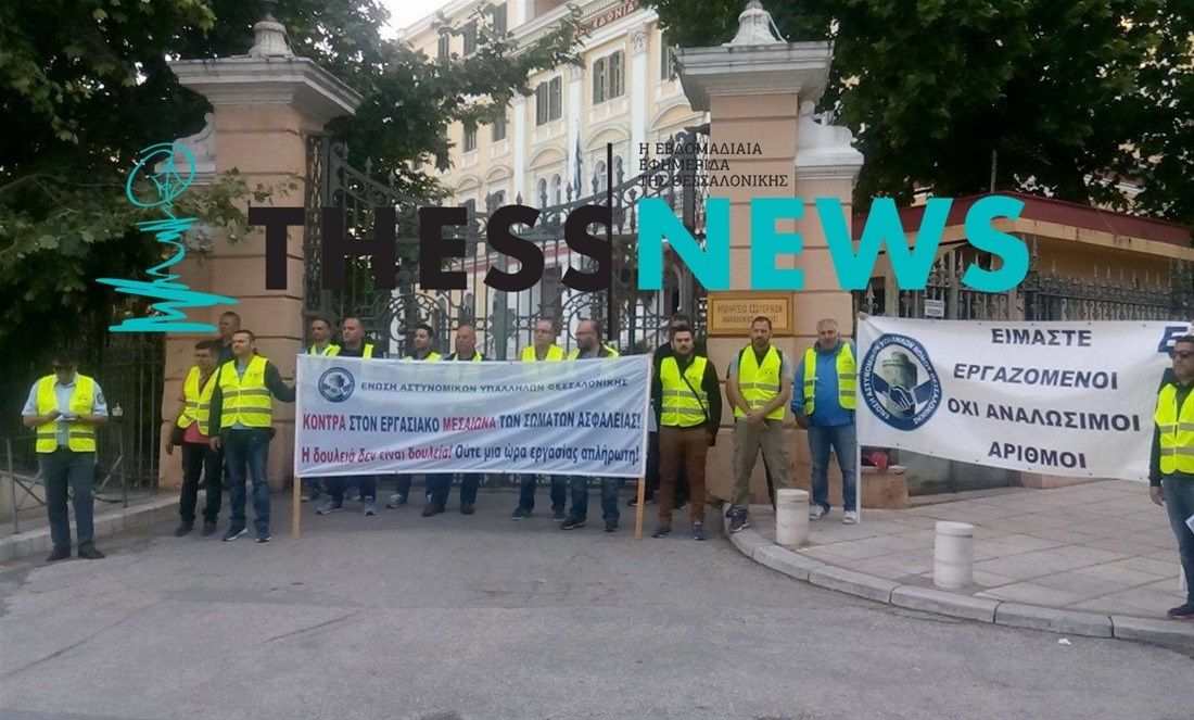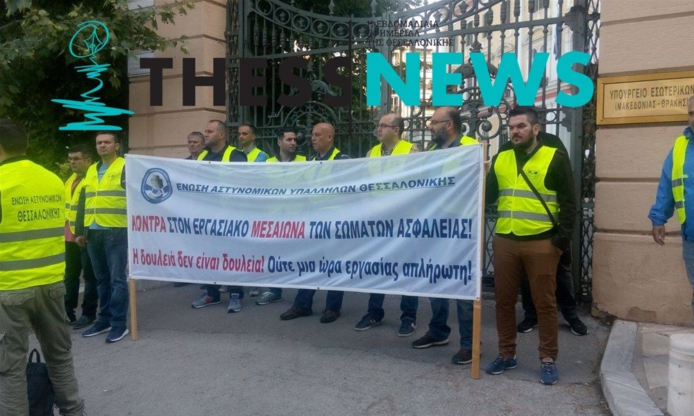 Μέλη της Ένωσης Αστυνομικών Υπαλλήλων Ν. Θεσσαλονίκης βρέθηκαν σήμερα έξω από το Υπουργείο Μακεδονίας- Θράκης όπου και ανάρτησαν πανό ενάντια στα νέα μέτρα και απέκλεισαν συμβολικά την είσοδο.