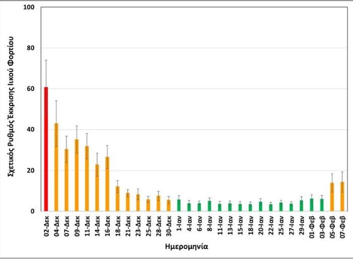 Το ποσοστό της συγκέντρωσης του ιικού φορτίου ανιχνεύεται σε επίπεδα αντίστοιχα της 20ης Οκτωβρίου, αλλά χαμηλότερα της συγκέντρωσης των τελευταίων ημερών του Οκτωβρίου, όταν είχε ξεκινήσει μία εκθετική αύξησή της, το φθινόπωρο.