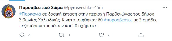 Μεγάλη πυρκαγιά ξέσπασε τα ξημερώματα Σαββάτου σε δασική έκταση της περιοχής Παρθενώνας του δήμου Σιθωνίας, στη Χαλκιδική.