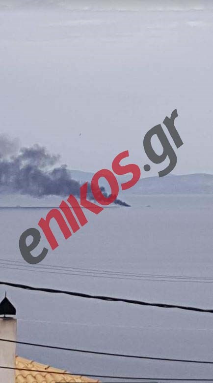 Αναγνώστης του enikos.gr έστειλε φωτογραφία από τη στεριά όπου φαίνεται ο πυκνός καπνός από την πυρκαγιά.