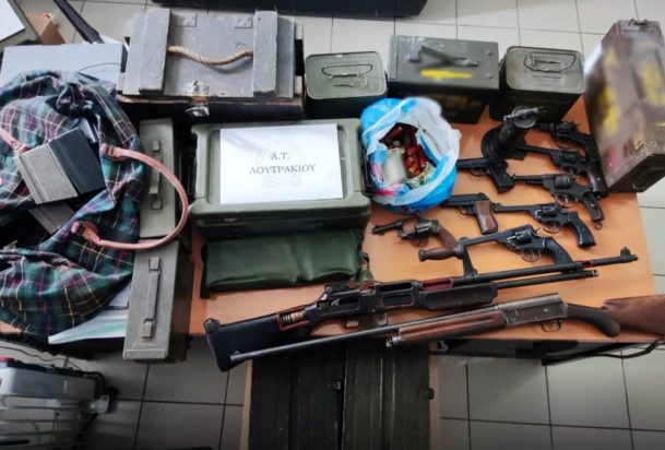 Ολόκληρο οπλοστάσιο έκρυβε στο σπίτι του στο Λουτράκι Κορινθίας, ένας 62χρονος. Πρόκειται για συνταξιούχο στρατιωτικό ο οποίος συνελήφθη στο Λουτράκι, από αστυνομικούς του Αστυνομικού Τμήματος Λουτρακίου. Σε βάρος σχηματίστηκε δικογραφία για παράβαση της νομοθεσίας για τα όπλα.