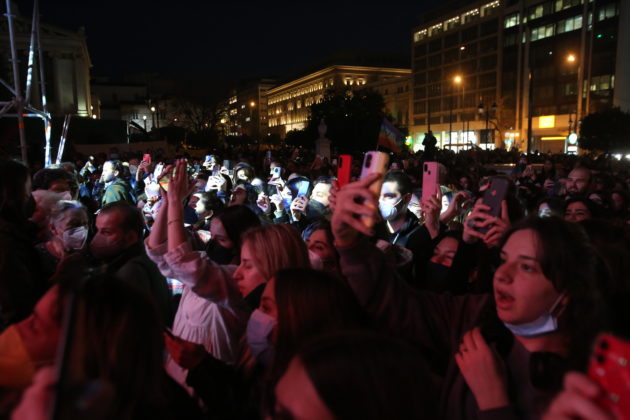 Μεγάλη ήταν η συμμετοχή του κόσμου στην αντιπολεμική Συναυλία για την Ειρήνη, που διoργάνωσε η πρωτοβουλία «Αλληλεγγύη για Όλους» στα Προπύλαια, στην οποία συμμετείχαν 40 καλλιτέχνες.
