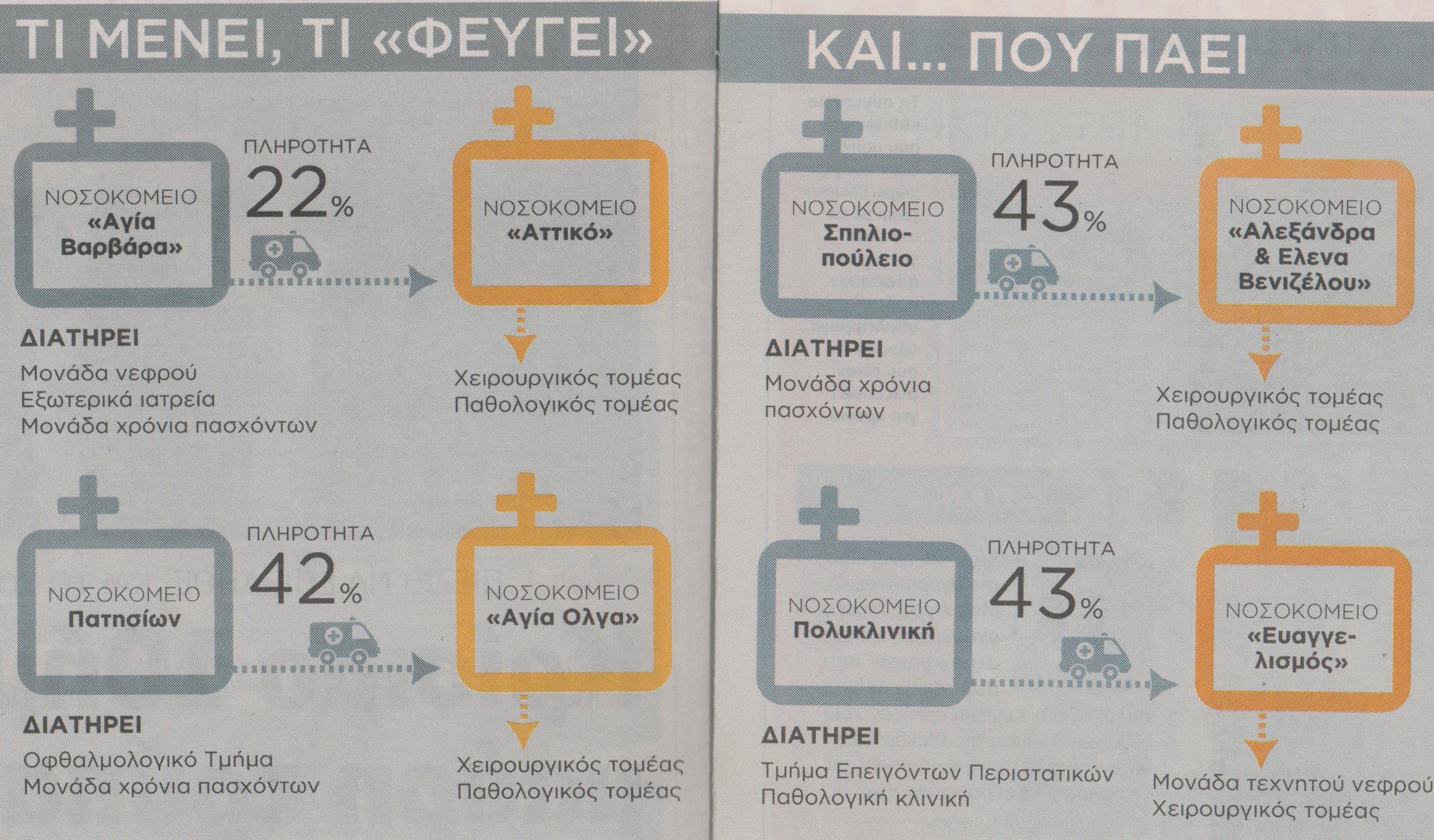Στην Αττική μήλον της Έριδος είναι τα νοσοκομεία “Αγία Βαρβάρα” (πρώην λοιμωδών), Πατησίων, το “Σπηλιοπούλειο” και η Πολυκλινική.