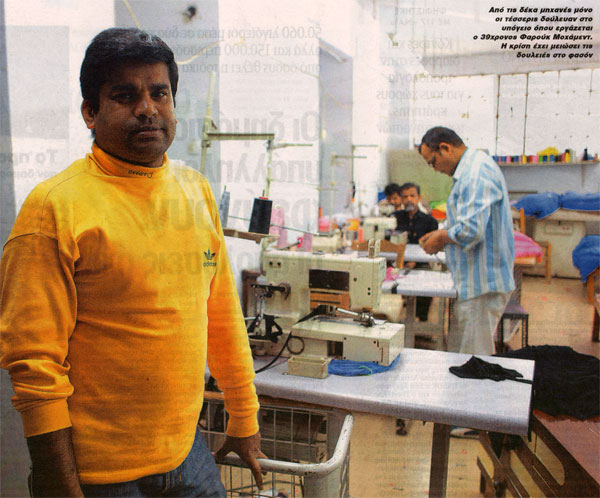 Σε ασφυκτικά μικρά υπόγεια της Αθήνας, δεκάδες ανασφάλιστοι μετανάστες γαζώνουν ρούχα από το πρωί μέχρι το βράδυ για λίγα ευρώ και φυσικά ανασφάλιστοι.Παρά τους συνεχείς ελέγχους που πραγματοποιούνται συνεχώς εντοπίζονται μετανάστες χωρίς άδεια παραμονής, ενώ δεν είναι λίγοι αυτοί που χάνουν την άδεια διαμονής, γιατί οι εργοδότες τους δεν κάλυπταν τις ασφαλιστικές τους υποχρεώσεις.