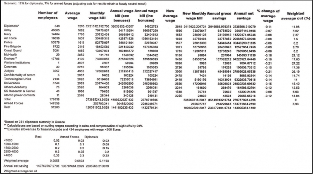 Έγγραφο-ντοκουμέντο που δημοσιεύεται στο περιοδικό της Ένωσης Αστυνομικών Υπαλλήλων Αττικής «Σύγχρονη Αστυνομία» και αναπαράγεται από το bloko.gr εξηγεί, σύμφωνα με τους συνδικαλιστές της ΕΛΑΣ, γιατί η κυβέρνηση δεν διαπραγματεύθηκε για τους μισθούς στρατιωτικών και αστυνομικών. Το έγγραφο φέρεται να το παρέδωσε στην κυβέρνηση η τρόικα πριν από την ψήφιση από το Ελληνικό Κοινοβούλιο του νέου μνημονίου.