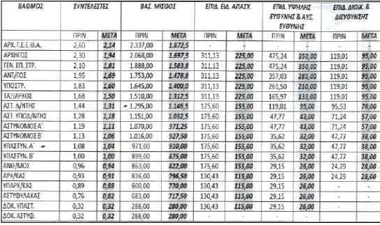 Τις επόμενες μέρες, βουλευτές που από χρόνια έλεγαν ότι «μας αγαπούν», για την ψήφο μας φυσικά, βγήκαν πρώτοι στα… κεραμίδια, κυκλοφορώντας πίνακες και αποδεδειγμένα είχατε, τόνιζαν, τις μικρότερεςμειώσεις. Σε μια τέτοια επίδειξη πινάκων, το μάτι στην οριζόντια κλίμακα, από μια περίεργη αίσθηση πήγαινε σιγά – σιγά για τον φόβο του εγκεφαλικού επεισοδίου! Είχαν ανά χείρας τον ξενόγλωσσο πίνακα που ήδη είχε καταρτίσει η Τρόικα και για του λόγου το αληθές, σας τον παραθέτουμε ως ντοκουμέντο».