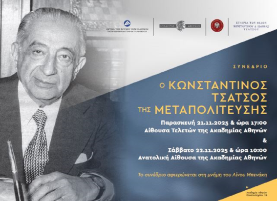 Το Ίδρυμα της Βουλής των Ελλήνων για τον Κοινοβουλευτισμό και τη Δημοκρατία σε συνεργασία με την Ακαδημία Αθηνών, το Κέντρο Βυζαντινών, Νεοελληνικών και Κυπριακών Σπουδών του Πανεπιστημίου της Γρανάδας και την Εταιρία των Φίλων Κωνσταντίνου και Ιωάννας Τσάτσου διοργανώνει συνέδριο αφιερωμένο στον Κωνσταντίνο Τσάτσο με θέμα Ο Κωνσταντίνος Τσάτσος της Μεταπολίτευσης με τη συμμετοχή ειδικών από την Ελλάδα και το εξωτερικό. Το συνέδριο θα πραγματοποιηθεί στην Αθήνα, στην Αίθουσα Τελετών της Ακαδημίας Αθηνών την Παρασκευή 21 Νοεμβρίου 2025 και στην Ανατολική Αίθουσα της Ακαδημίας Αθηνών το Σάββατο 22 Νοεμβρίου 2025 (Πανεπιστημίου 28).