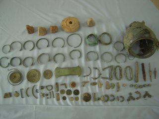 Σύμφωνα με ανακοίνωση της Αστυνομίας, κατασχέθηκαν τα εξής: ένας χάλκινος σταμνοειδής κάδος (ελλιπής κατά το σώμα), ένας ακέραιος χάλκινος διπλούς πέλεκυς, πέντε πήλινες αγνύθες, τρία τμήματα από χάλκινες οκτώσχημες πόρπες, 58 χάλκινα και δυο ασημένια νομίσματα, 52 χάλκινα δακτυλίδια, 18 ακέραια χάλκινα ψέλια και τέσσερα ελλιπή, δύο χάλκινοι κρίκοι, δύο σιδερένιες αιχμές βελών, τμήμα σιδερένιου καρφιού, οκτώ χάλκινες χάνδρες, τμήματα από τέσσερις χάλκινες πόρπες, τμήμα χάλκινης περόνης, μία χάλκινη εφυλίδα, τέσσερις χάλκινες λαβές αγγείων, δύο χάλκινα κοσμήματα, τρία μολύβδινα εξαρτήματα και δώδεκα χάλκινα ελάσματα.