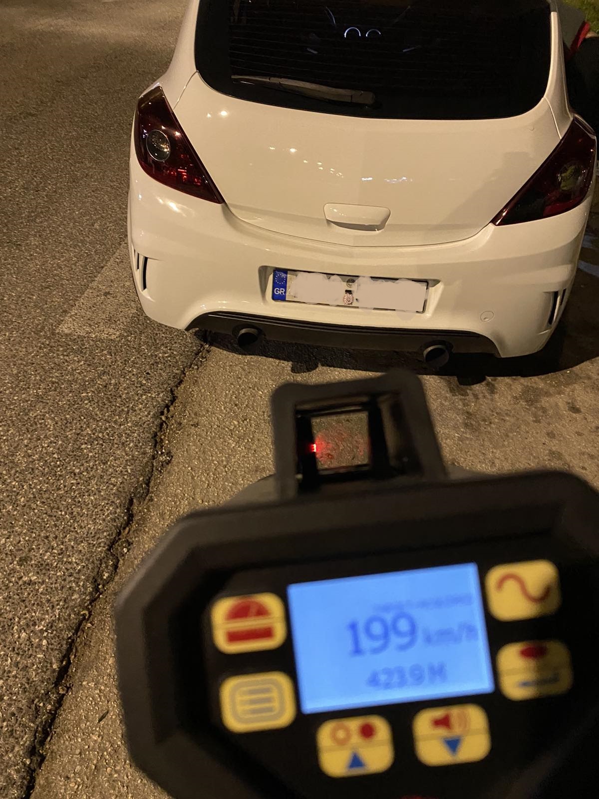 Συγκεκριμένα διαπιστώθηκε μέσω φορητής Ειδικής Ηλεκτρονικής Τεχνικής συσκευής (radar) να κινείται με 199 χλμ/ώρα αντί του ανώτατου επιτρεπόμενου ορίου των 50 χλμ/ώρα, με αποτέλεσμα την πρόκληση κινδύνου για τους λοιπούς χρήστες της οδού.