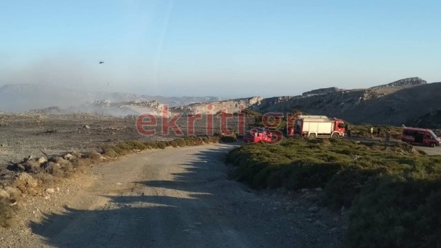 Συνεχίζεται η μεγάλη προσπάθεια της Πυροσβεστικής Υπηρεσίας Κρήτης καθώς και των εθελοντών για να περιορίσουν την πυρκαγιά που κατακαίει αγροτική περιοχή έξω από τα Αχλάδια Σητείας από τις 11 το πρωί.