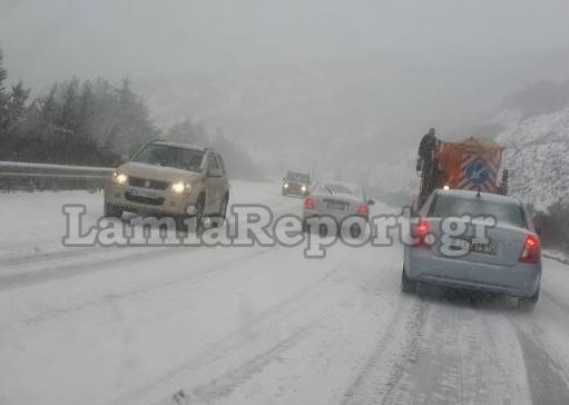 Στο τμήμα του δρόμου Λαμίας – Δομοκού επικρατούσε νωρίτερα εικόνα χάους με νταλίκες διπλωμένες, ΙΧ χωρίς αλυσίδες και πολυ αυξημένη κυκλοφορία