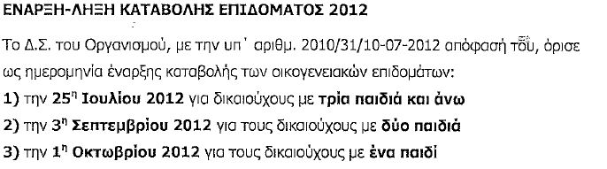 Αναγνώστης του enikos.gr καταγέλλει ότι στο site του ΟΑΕΔ σχετική εγκύκλιος αναφέρει ότι η έναρξη καταβολής οικογενειακών επιδομάτων για γονείς με δύο παιδιά είναι η 3η Σεπτεμβρίου. Χθες, δηλαδή.Ο καταγγέλλων, λοιπόν, τηλεφώνησε στον ΟΑΕΔ, όπου όμως, του είπαν ότι “λάθος κατάλαβε”. Οτι η 3η Σεπτεμβρίου είναι η ημερομηνία έναρξης κατάθεσης δικαιολογητικών και ότι το επίδομα θα καταβληθεί μέχρι τον Οκτώβριο.Δείτε, πάντως, τι αναφέρει το site του ΟΑΕΔ: