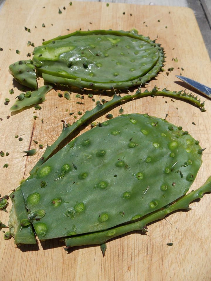 – Κόβουμε τα φρέσκα φύλλα στο μέγεθος…. μιας μεγάλης παλάμης.Τ α αγκάθια να είναι μαλακά ακόμα.