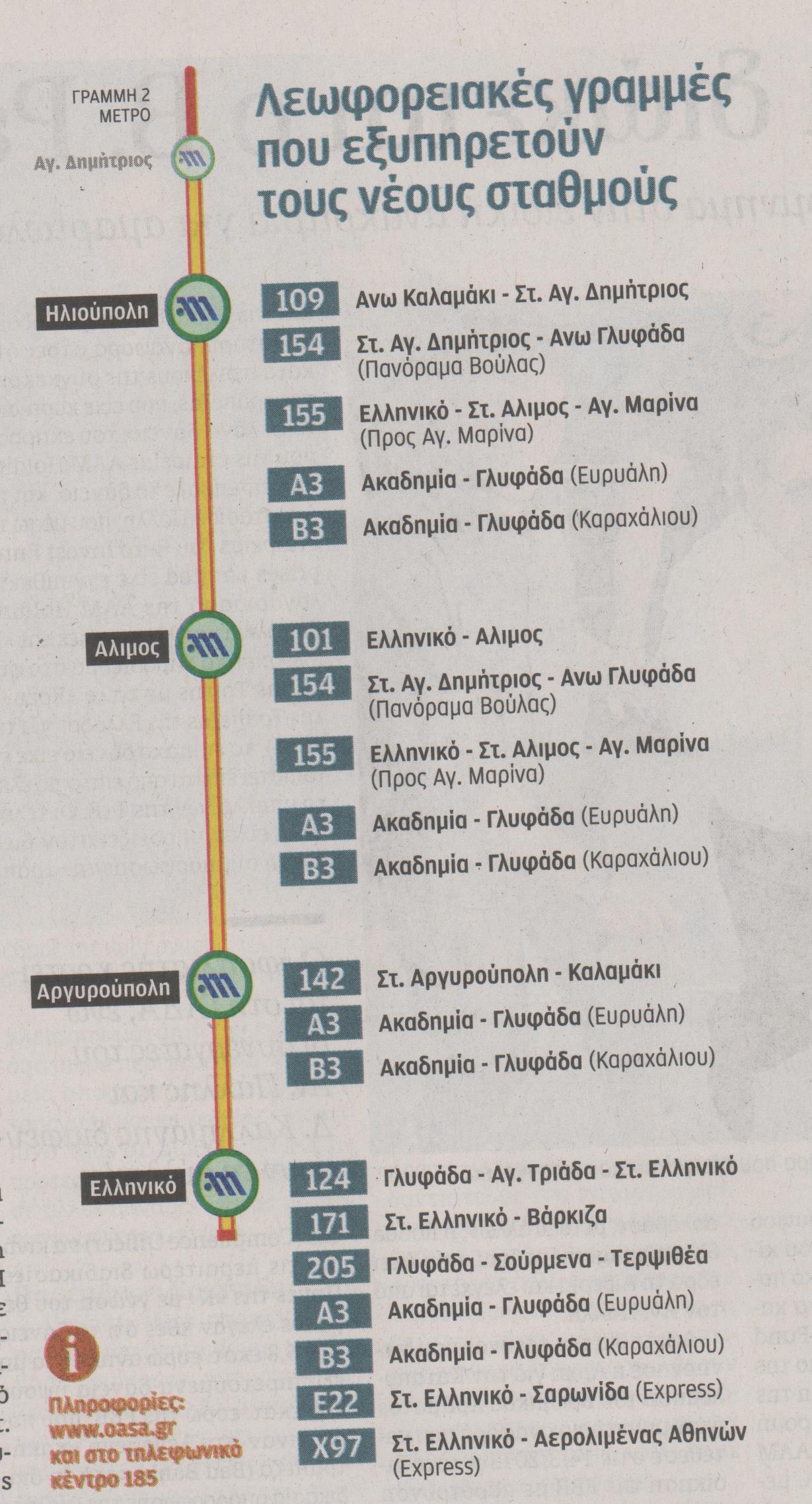 Η επέκταση της γραμμής 2 από τον Άγιο Δημήτριο προς το Ελληνικό θα αποτελέσει ανάσα για τους κατοίκους των νοτίων προαστίων, καθώς υπολογίζεται ότι η λειτουργία των νέων σταθμών θα περιορίσει την ημερήσια κυκλοφοριακή επιβάρυνση κατά 50.000 μετακινήσεις με Ι.Χ.