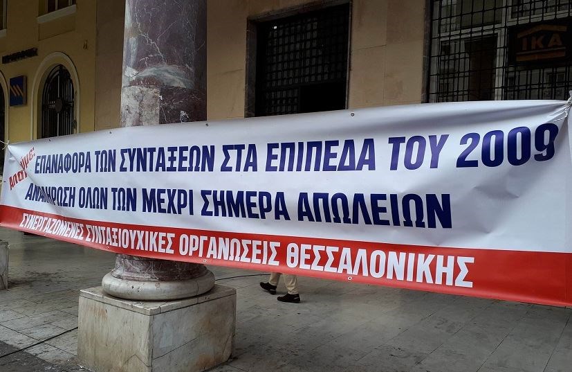Συνταξιούχοι κρέμασαν γιγαντιαίο πανό στο κτίριο του ΙΚΑ στη Θεσσαλονίκη – ΒΙΝΤΕΟ – ΦΩΤΟ