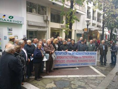 Ο πρόεδρος του σωματείου Συνταξιούχων ΙΚΑ Λάρισας, Θανάσης Κουμαντζέλης, δήλωσε ότι «είναι κοροϊδία το χαρτί που μας έστειλε ο κ. Κατρούγκαλος γιατί εμείς βλέπουμε στο ΑΤΜ κάθε μήνα πόσο μας έχουν κόψει τη σύνταξη», ενώ σημείωσε πως «θα έχουν και συνέχεια οι περικοπές».
