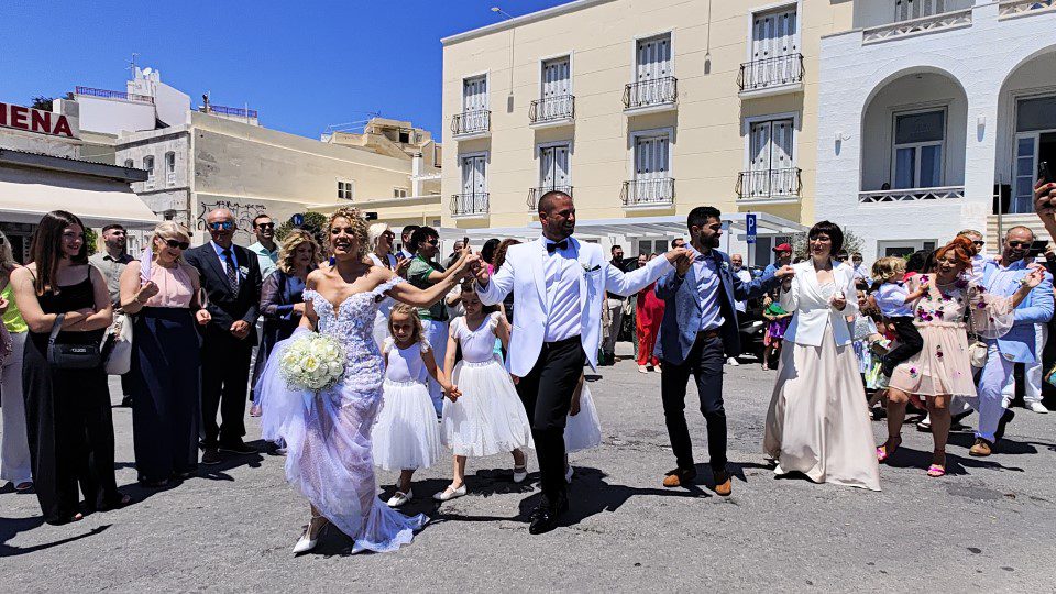 Διπλός γάμος και διπλή χαρά στην Σύρο, με δύο νέους γνωστούς και αγαπητούς σε όλο το νησί, που παντρεύτηκαν, δίνοντας στον γάμο τους την προσωπική τους πινελιά, με όργανα χορούς και ένα λεωφορείο του ΚΤΕΛ, στο επίκεντρο του γλεντιού, σύμφωνα με το cyclades24.gr.