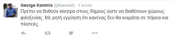 Τέλος ο κ. Καμίνης πρόσθεσε ότι θα πρέπει να δίνονται κίνητρα στους δήμους για να διαθέσουν τα κέντρα φιλοξενίας.