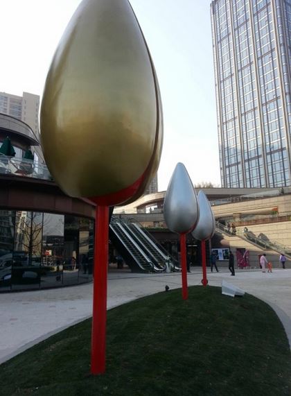 Στις φωτογραφίες βλέπετε την εγκατάσταση των μνημειακών συνθέσεων “COSMICON” (12 μέτρα Χ 12 μέτρα Χ 3,5 μέτρα), “ECVOUS”( 8μ.Χ 3,5μ Χ 1,20μ.) και “KELYPHOS”(5μ. Χ 2,20μ. Χ 2,20 μ.) , κατά παραγγελία του VANKE MIDTOWN MALL για να τοποθετηθούν στις δύο εισόδους του αντιστοίχως. Τα αποκαλυπτήρια των έργων και η λειτουργία του Mall διενεργήθηκαν στις 28 Δεκεμβρίου 2013 ενώπιον  τοπικών παραγόντων, επιφανών επιχειρηματιών και πλήθους κόσμου.  Πρόκειται για μοναδικές συνθέσεις που δημιουργήθηκαν αποκλειστικά και μόνο για το συγκεκριμένο εμπορικό κέντρο. Είναι εικόνες που παραπέμπουν στη μοναδική σε ύφος δουλειά του Κωστή Γεωργίου, αναγνωρίσιμη σε διεθνές επίπεδο. Ο κινέζικος τύπος υποδέχθηκε τις γλυπτικές εγκαταστάσεις του Κωστή Γεωργίου με ενθουσιασμό , γεγονός που καταγράφηκε με εγκωμιαστικό τρόπο στα έντυπα,  τις εφημερίδες  και την τηλεόραση.
