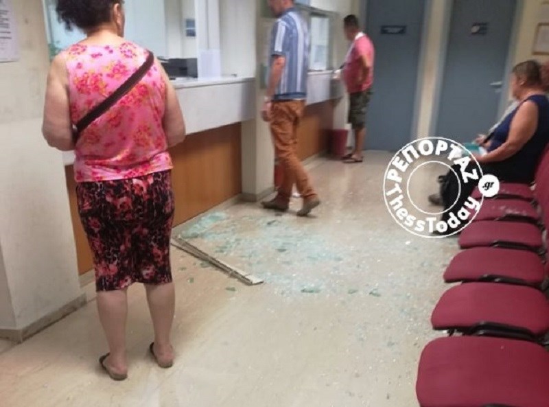 Γυαλιά-καρφιά τα έκανε άνδρας στο ΙΚΑ της Τούμπας, στη Θεσσαλονίκη, επειδή δεν είχε εκδοθεί το δικαιολογητικό που ζητούσε.