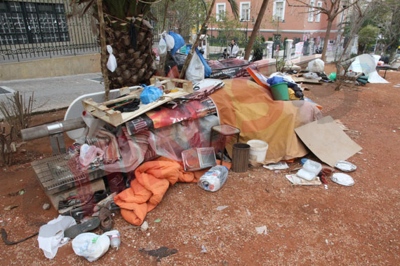 Αυτή είναι η Αθήνα της “νοικοκυρεμένης Ελλάδας”. Οι άστεγοι που βρήκαν καταφύγιο στο αλσύλιο της Νομικής “περίσσεψαν” από την κοινωνική πρόνοια που δεν φτάνει για όλους.