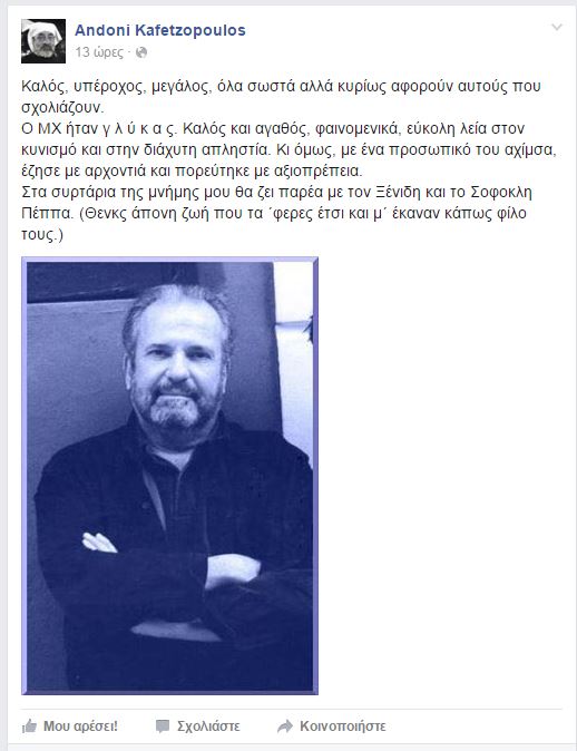 Ο Αντώνης Καφετζόπουλος έγραψε λίγα λόγια στο facebook για τον Μηνά Χατζησάββα.