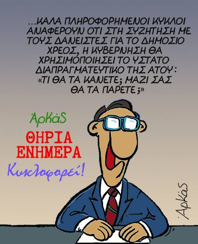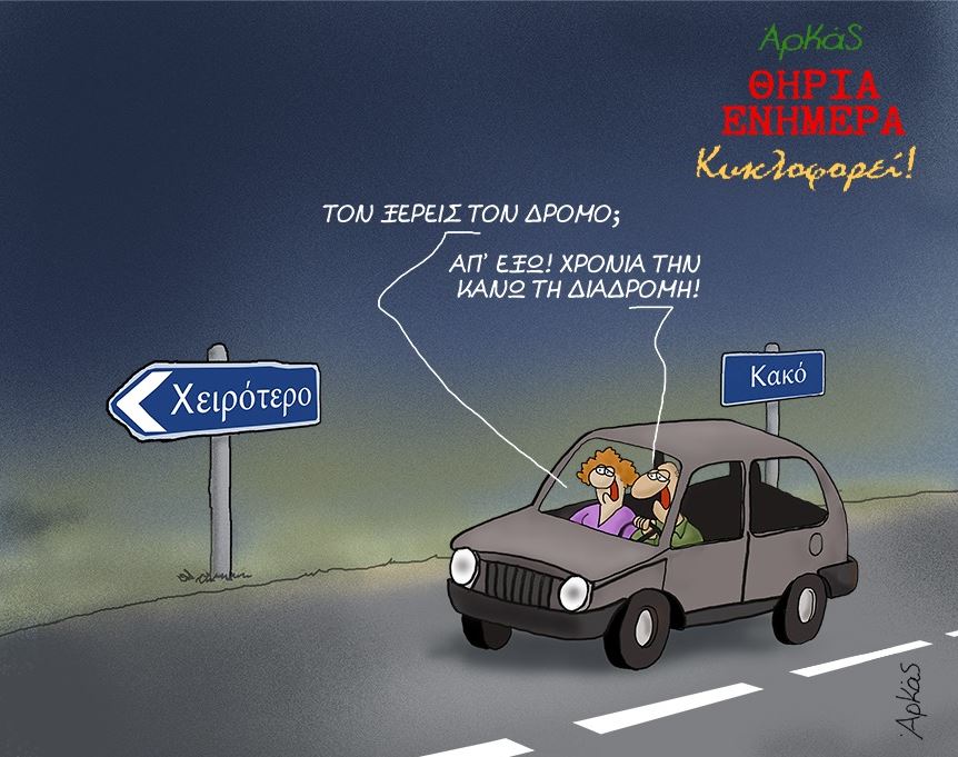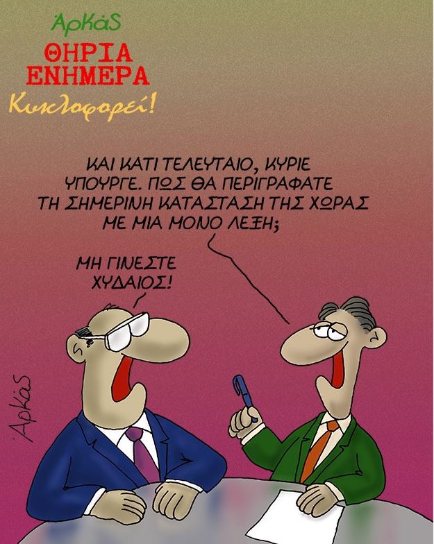 Στη νέα του σειρά υπό τον τίτλο «Θηρία ενήμερα» ο Αρκάς υποδέχεται και σκιτσάρει με το δικό του μοναδικό τρόπο το σημερινό δημοψήφισμα.
